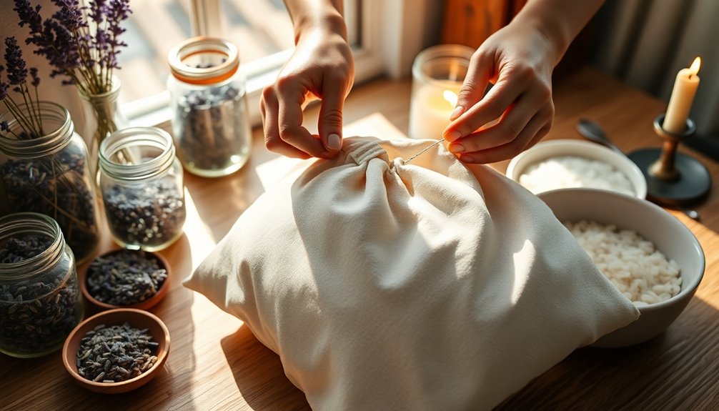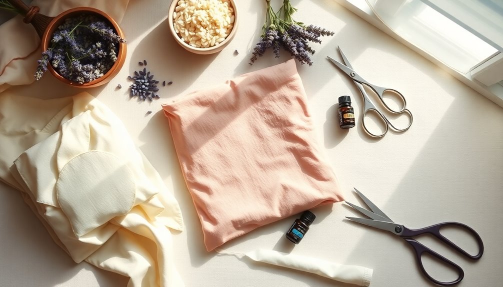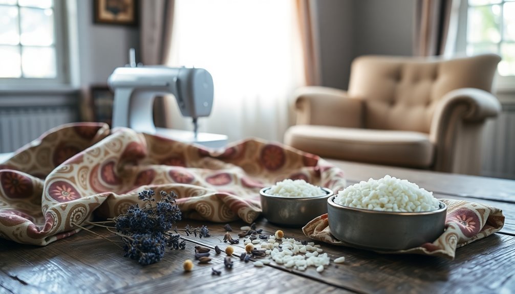 Creating your own aromatherapy rice bag requires a few essential supplies to guarantee a successful and enjoyable crafting experience. Here's what you'll need: